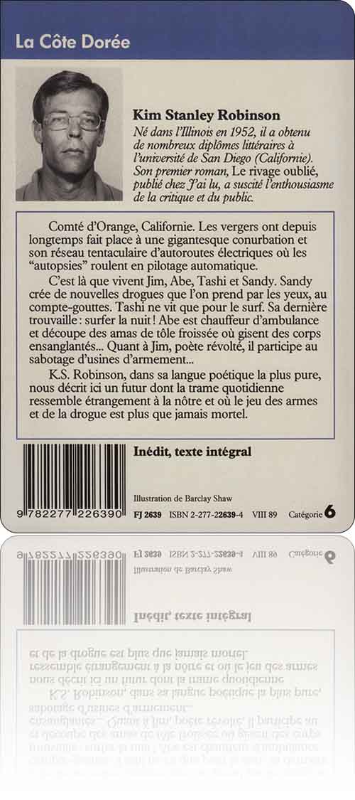 Prenons la Côte Dorée de Kim Stanley Robinson et passons le livre au scanner. L'action se déroule dans le comté d'Orange en Californie, au début du xxie siècle. Quoi de neuf aux États-Unis ? Un peu plus d'autoroutes, de surpopulation, de chômage, de drogues, d'ennui, de guerres sporadiques. Une mégalomanie du rêve américain atteint par le cancer. Rien de plus inquiétant pour Jim, Abe, Tashi et Sandy que les problèmes auxquels se heurtent la plupart des jeunes, aujourd'hui. Même chose pour McPherson, le père de Jim, tarabusté par son supérieur pour qu'il fignole des armes antimissiles de plus en plus sophistiquées.