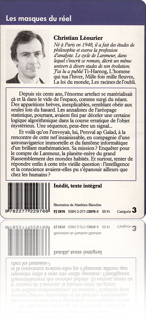 Christian Léourier poursuit méthodiquement son Cycle de Lanmeur. Dernier paru, Les Masques du réel me semble d'un cru honnête. Jouant habilement avec un certain nombre de thèmes connus sur les épaves mystérieuses issues de civilisations oubliées, les pionniers en dérive sur des mondes glauques, les créatures immondes au fond des puits sacrés, les paradis secrets de l'espace et du temps, Léourier trafique les idées reçues pour mieux nous entraîner dans son jeu d'échec analytique. Entre la grande souveraine de Lanmeur à son déclin et les puissants barbares de l'Enclave se joue l'avenir du Rassemblement. Persval ap Galad sera-t-il l'homme qui convient pour déjouer la menace ?