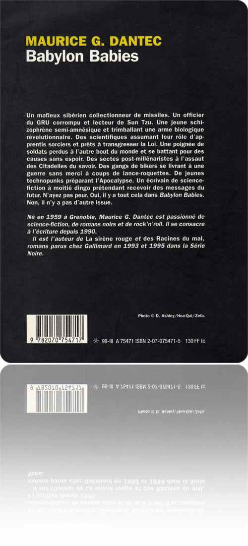 Mais ce serait dommage, pour cette raison mineure, de négliger Babylon babies. Je l'ai déjà écrit et ne me renie, Maurice G. Dantec fait partie de ces très rares feuilletonistes de génie dont nous guettons l'apparition d'une œuvre avec avidité.