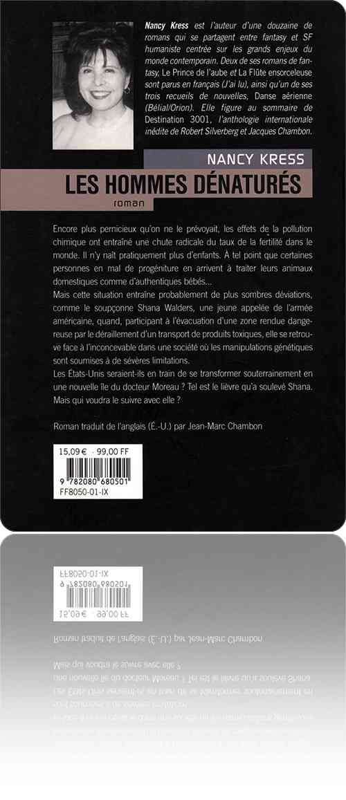 Fidèle à ses sujets de prédilection, la danse et la manipulation génétique, Nancy Kress récidive avec les Hommes dénaturés, après Danse aérienne dont le souvenir persiste durablement dans l'esprit de ses lecteurs — car son ton et sa facture ouvrent une voie originale à la Science-Fiction américaine. Résolument opposée à la tradition locale des super best-sellers gonflés au traitement de texte, cette jeune romancière opte pour le récit court et mesuré, chargé de sens et de sensibilité.