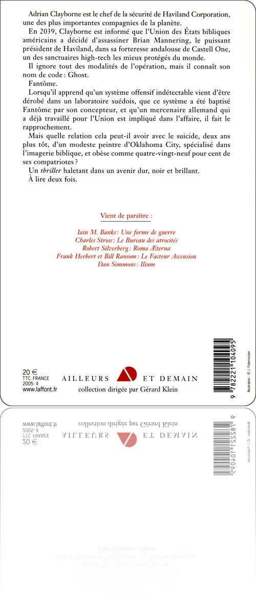 Pour le reste, il s'agit d'un thriller futuriste sans profonde originalité, relevé d'une touche de maniérisme. En 2030, sur notre continent, la Correction a renvoyé les immigrés dans leurs foyers. Les obèses fans de Dieu dirigent les États-Unis. Clayborne, responsable de la sécurité d'une entreprise géante, tente de protéger son patron qu'il sait menacé par une arme technologique d'intrusion mystérieuse, Ghost. Taillé au cordeau et mené avec maestria, il manque à Forteresse l'essence même de l'esprit spéculatif. Car on ne distingue que l'image superficielle de cette société future.