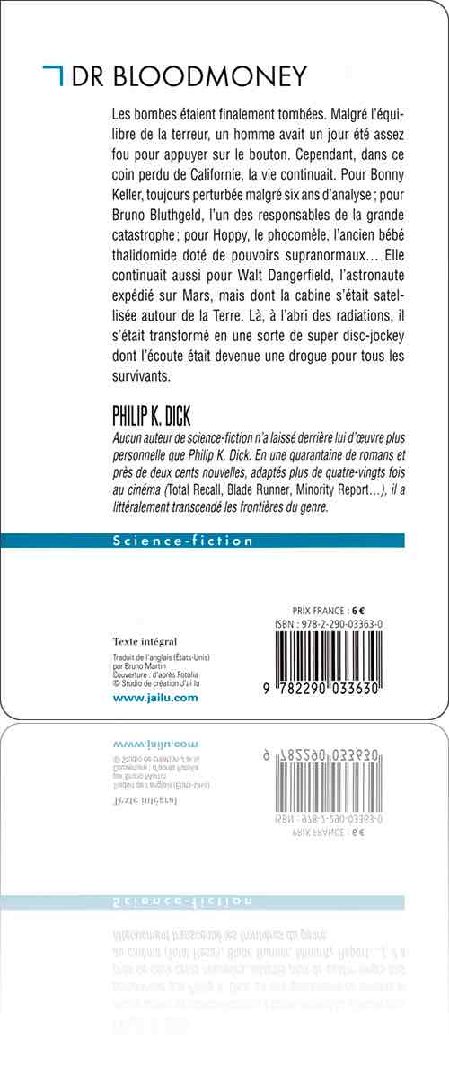 - Dr. Bloodmoney or How we got along after the bomb, 1963, 1965, 1970. Sutin lui accorde la note 9 sur une échelle de 10. Ce roman figure dans le présent recueil.↑