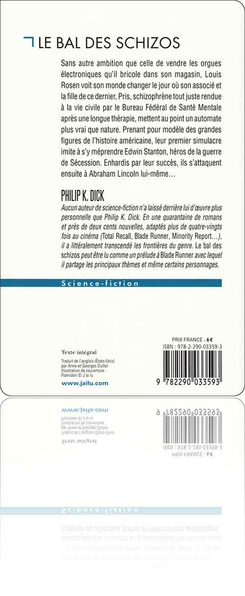 Mais je crois volontiers que l'image fantasmatique de Jane, la fausse jumelle morte, lui a servi aussi. J'ai un peu de mal à accepter tout de go que la disparition de sa sœur l'ait traumatisé au point qu'il donne à entendre à Thaon et à Sutin. De cette mort qui résulte, semble-t-il, d'une malnutrition de l'enfant prématurée, il n'a rien pu éprouver d'autre que la culpabilité que sa mère a pu ressentir et lui transmettre. Celle-ci lui a du reste parlé de sa sœur avec, semble-t-il aussi, mesure et sensibilité, n'enfermant pas ce décès dans un silence mortifère. Mon sentiment est que Dick a transféré sa partie psychotique sur le “souvenir” instrumentalisé de Jane, se permettant ainsi de conserver en lui cette partie clivée de lui-même tout en la tenant à distance. La lecture attentive de ses œuvres où la jumelle est transposée renforce cette hypothèse.