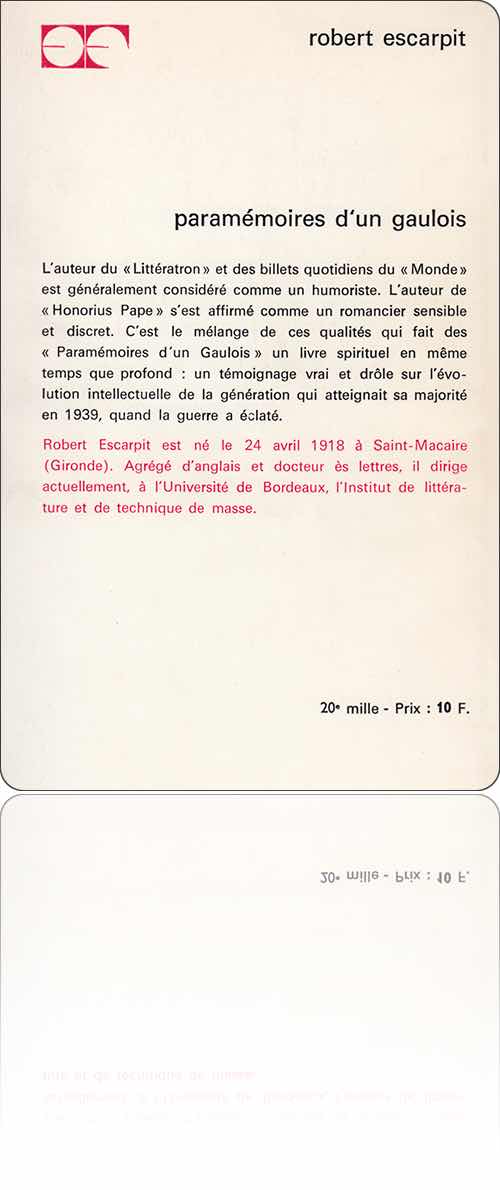 • Robert Escarpit : Paramémoires d'un Gaulois (Paris : Flammarion, 1968).