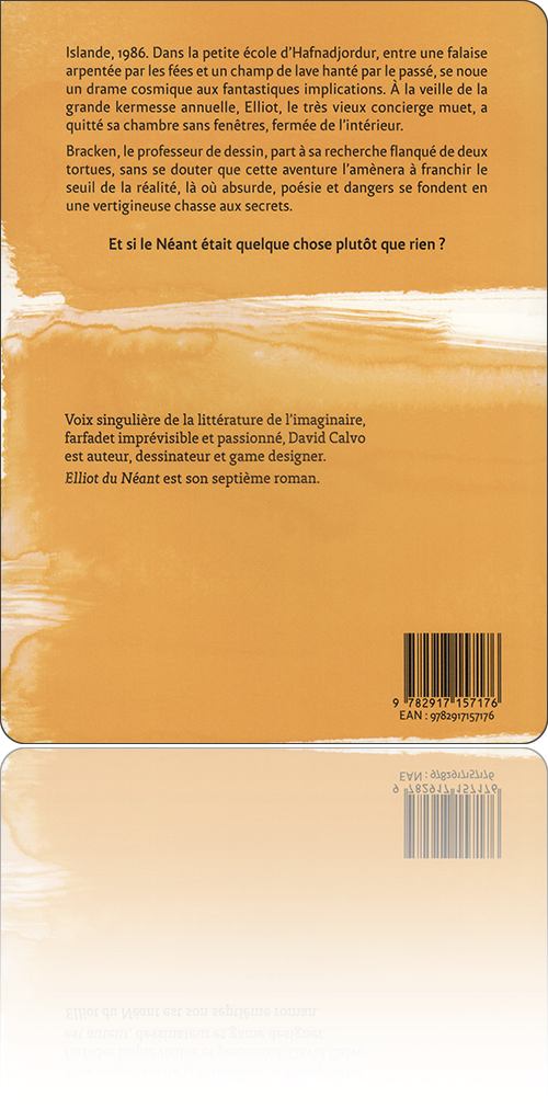 Cette petite réflexion pour introduire Elliot du Néant, le dernier David Calvo paru à la Volte, qui se situe entre la bulle de savon et le menhir runique. À la fois léger, volatil, aporétique et profond, il échappe à toute définition. Par exemple, si j'essayais de démontrer aux fidèles de ce carnet particulier qu'il s'agit d'un roman de science-fiction, ils risqueraient de le lire en feignant de me croire ; ce qui ne manquerait pas de soulever un mur de protestation. Mur qui me retomberait fatalement sur le dos parce que les pierres en sont mal scellées, branlantes.
