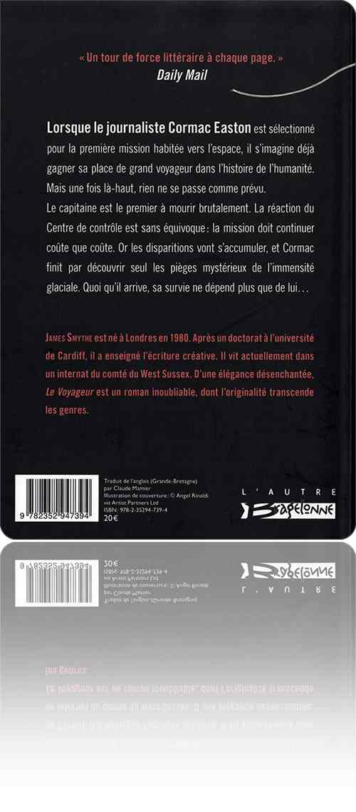 Sous un habillage noir, d'une sobriété digne de la série homonyme, je n'ai pas pensé une seconde que les éditions Bragelonne m'envoyaient le dernier né de leur production, le Voyageur de James Smythe.