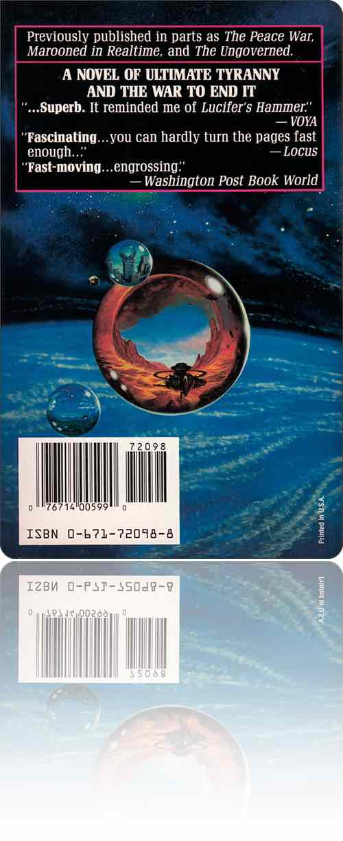 J'ai enfin lu le Cycle de la Temporalité de Vernor Vinge. Il s'agit d'un roman, the Peace war (1984), non traduit, suivi d'une nouvelle, "the Ungoverned" (1985), puis d'un second roman, Marooned in realtime (1986), traduit sous le titre de la Captive du temps perdu.