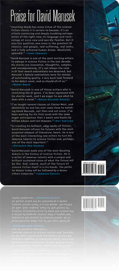 David Marusek a écrit une poignée de nouvelles remarquables, dont deux seulement ont été traduites à ma connaissance : "Getting to know you" et "We were out of our minds with joy".(1) La première partie de son premier roman Counting heads, reprend cette dernière sous une forme modifiée.