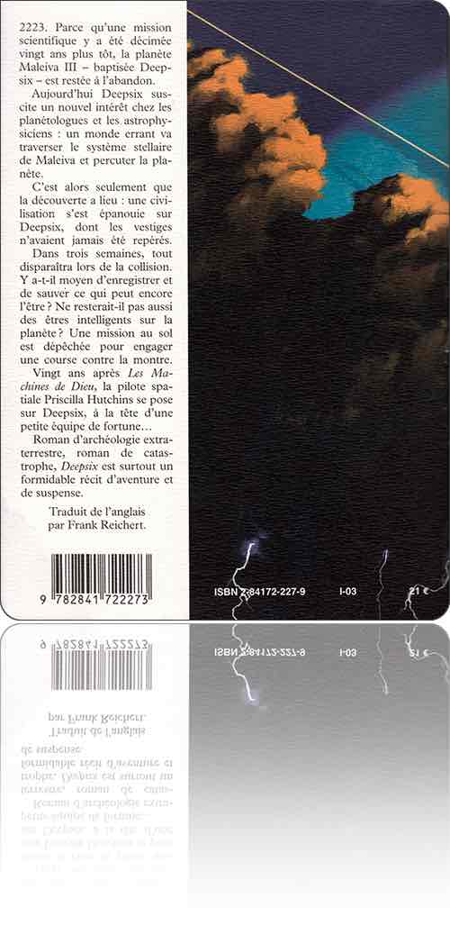 Après the Engines of God, la deuxième aventure de l'intrépide Priscilla Hutchins, pilote de vaisseau supraluminique, se passe sur la planète Maleiva III, appelée familièrement Deepsix,(1) qui est sur le point d'être avalée par une géante gazeuse qui va la percuter de plein fouet. Vingt ans auparavant, une équipe d'exploration avait été attaquée par la faune indigène et était partie en catastrophe sans avoir découvert quoi que soit d'intéressant. Personne n'y était retourné jusqu'à ce que la collision imminente attire de nouveau des visiteurs, que ce soit par intérêt scientifique ou pour le spectacle. Il va sans dire que les choses ne vont pas se passer comme prévu. Un groupe de gens disparates se retrouve isolé sur la planète qui n'en a plus que pour quelques jours et ils doivent parcourir des kilomètres à pied pour pouvoir — peut-être — être secourus. En route, ils découvrent les traces évidentes d'une vie intelligente et de technologies, certaines plutôt primitives, d'autres manifestement très avancées. C'est donc de nouveau — la cinquième fois, oui, oui — un space opera exoarchéologique. On suit, en parallèle, les découvertes successives et les hypothèses qui s'échafaudent à leur sujet, et les péripéties des personnages, tant sur le plan psychologique et humain que sur le plan bassement terre à terre de leur lutte pour sauver leur peau.
