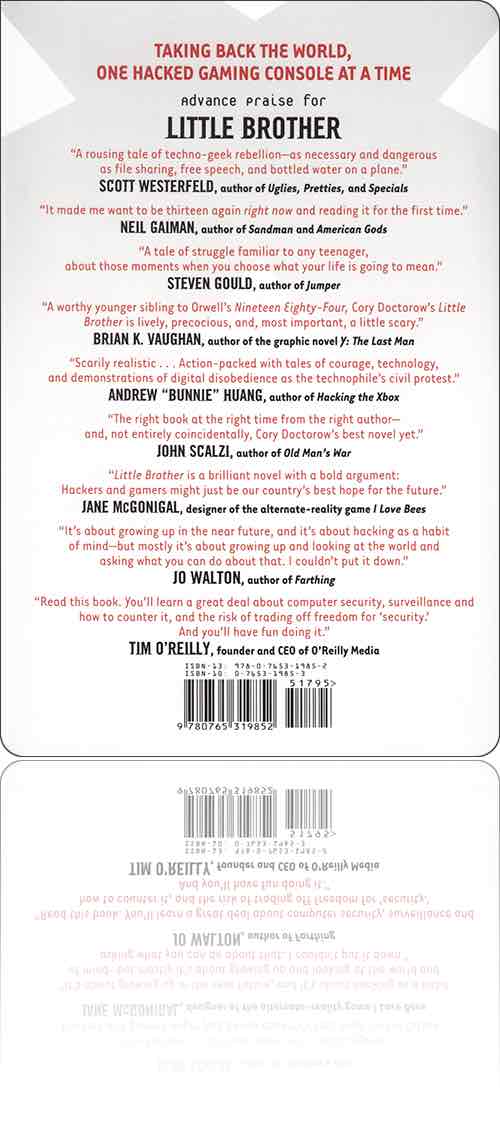 Little brother de Cory Doctorow est sur la liste des présélectionnés pour le prix Hugo de cette année ; je l'ai donc lu afin de pouvoir voter à la convention mondiale de Montréal.