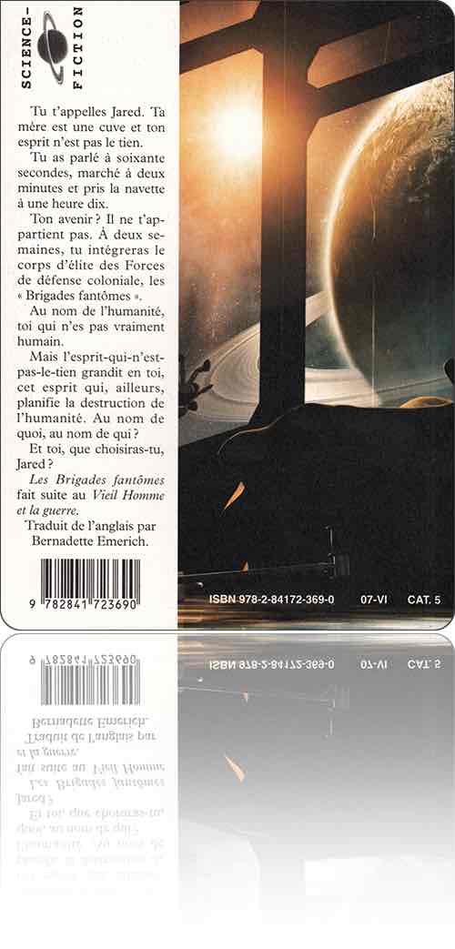 On suit un groupe de seize “nouveau-nés” depuis leur réveil, à travers leurs premiers pas et leur entraînement, puis lors de diverses missions où leur nombre chute drastiquement. Un de ces soldats, Jared Dirac, est spécial : il a été créé pour héberger la conscience d'un certain Charles Boutin, génie en matière de transfert de conscience mais qui est passé, on ne sait pourquoi, à l'ennemi. En le mettant dans un corps tout neuf, les militaires de la Force de défense coloniale s'imaginent qu'ils pourront l'interroger et peut-être apprendre pourquoi le Boutin original a trahi et ce qu'il est en train de tramer là où il est, lieu qu'ils espèrent aussi découvrir. Boutin est parti en faisant croire à un suicide mais dans le feu de l'action a omis d'effacer l'enregistrement de sa conscience qui est restée dans une machine. Malheureusement, le transfert de celle-ci ne se passe pas comme prévu et le corps se réveille comme n'importe quel soldat de ce type, sans aucune mémoire. On décide alors de l'intégrer normalement à la Brigade fantôme comme il l'aurait été s'il n'y avait pas eu le projet Boutin, tout en le mettant sous les ordres d'un officier de confiance, Jane Sagan, qu'on a vue dans le précédent volume, pour qu'il soit tout particulièrement surveillé. Bien vu, car la conscience de Boutin se réveille progressivement dans le cerveau de Jared et s'intègre petit à petit à la personnalité naissante et indépendante de celui-ci. C'est là tout l'intérêt — et même le seul — de ce livre, par ailleurs rempli des mêmes clichés et des mêmes aventures militaristes que le premier. La nature de la conscience et de la personnalité, que devient le sentiment d'être “soi” quand une autre conscience est en train de se fondre dans la sienne, voilà des sujets intéressants et explorés de façon assez habile. Pas avec une grande subtilité ni très en profondeur, mais suffisamment pour garder mon intérêt jusqu'à la fin malgré les bagarres et les tueries répétitives qui m'ont rapidement ennuyée. Sans parler des motivations simplistes des divers protagonistes. Et suffisamment pour que je passe au suivant, the Last colony.
