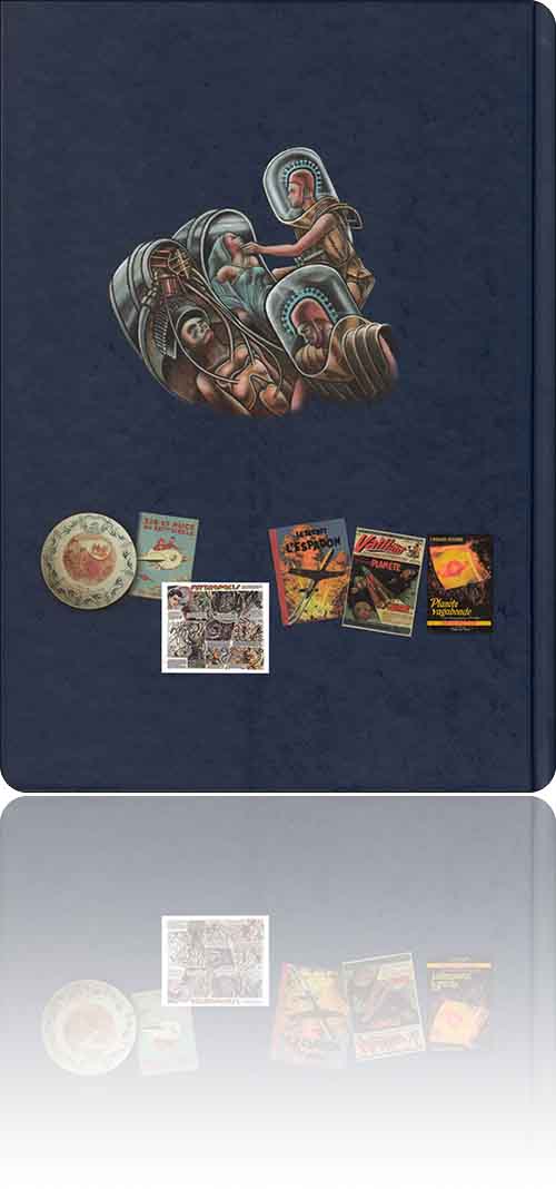 L'illustration de couverture s'enchaîne avec celle de l'autre volume. Incorporé au coffret RétrofictionS à l'occasion de la sortie en librairie.
