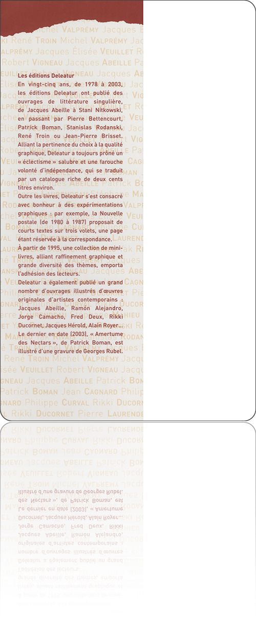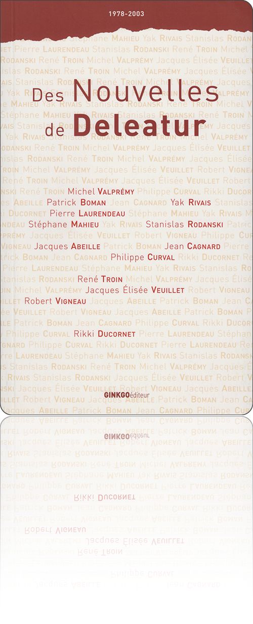 En hommage aux éditions Deleatur (1978-2003), dirigées par Pierre Laurendeau. Avant-propos de Jacques Élisée Veuillet. Contient un dictionnaire des illustrateurs et chaque auteur est présenté biobibliophotographiquement en tête de texte. Seuls les textes nous concernant au sommaire ont été pris en compte.