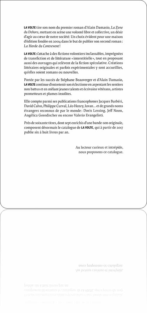 Une cinquantaine de noms ont été envisagés par Mathias Échenay et Alain Damasio, le premier ayant finalement choisi la Volte même si le deuxième aurait préféré Chaos debout. ¶ À l'occasion du dixième anniversaire de la maison d'édition et dans le cadre du festival Utopiales 2014, le salon d'écoute Sons d'encre [ 1 ] [ 2 ] a proposé 101 heures de programmation spéciale par Phaune Radio offrant une série d'escales imaginogènes à l'intérieur des mondes voltés : amplification d'univers, ondulation des temps, bruits du futur & résonances sauvages… ¶ À l'occasion du quinzième anniversaire, la politique éditoriale de la maison d'édition a été formulée au travers d'un manifeste bipartite signé par l'éditeur Mathias Échenay et l'auteur Valerio Evangelisti, le premier étant seul repris dans le nouveau catalogue. Le "Manifeste pour la Science-Fiction" de l'auteur Philippe Curval les a rejoints un peu plus tard sur la même page.