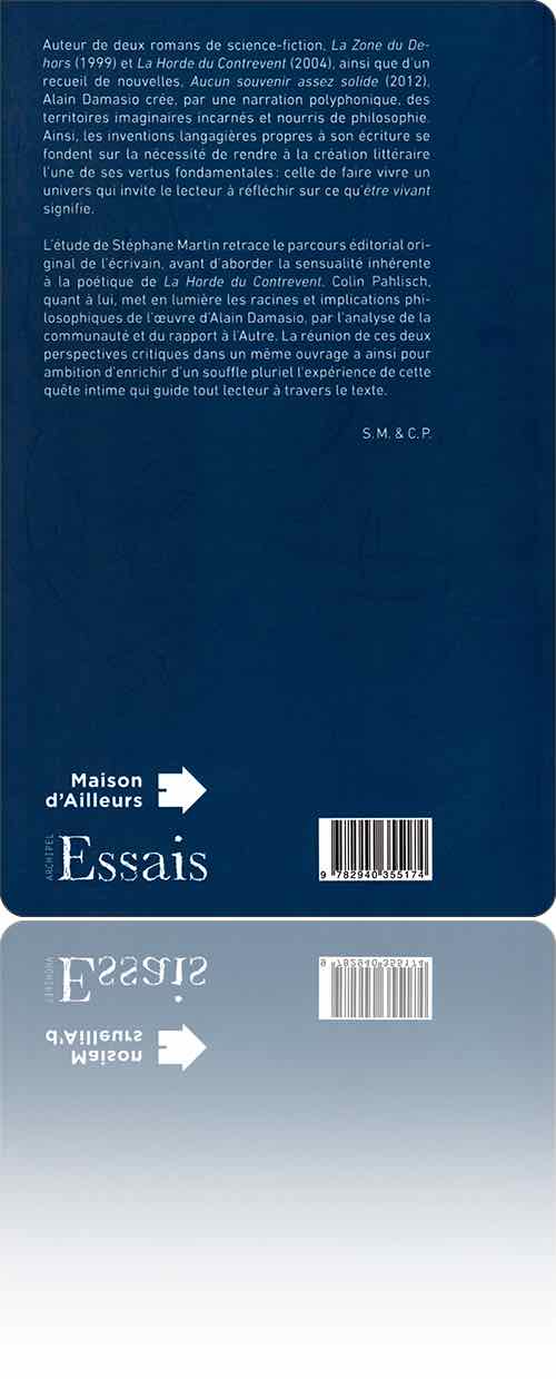 Comporte une préface, un avant-propos et deux postfaces. Publié avec le soutien de la section de français et du décanat de la faculté des lettres de l'université de Lausanne. Porte aussi le logo de la Maison d'Ailleurs.