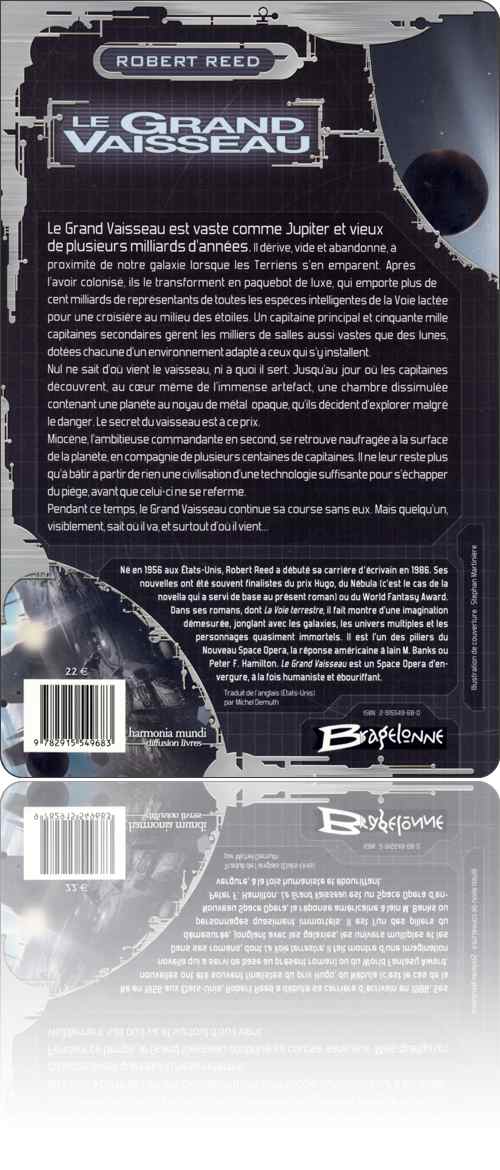 Robert Reedle Grand Vaisseaudans l'édition : Bragelonne › SF, 2006[ 1 ] [ 2 ]de :Robert Reedtitre :le Grand Vaisseausous une couverture de :Stephan Martiniereédition :France › Paris : Bragelonne › SFtype, date et codification :volume simple, mai 2006, ISBN 2-915549-68-0description matérielle :416 pages, broché, 15×24 cmpar ailleurs :amazon.frbnf.frbooks.google.frbragelonne.frnoosfere.orgnotice :frxliipcxzlZ828dSYBZl4qzpGPk5a9bPcontenutextes : 1fiction : 1rédactionnel : 0francophone : 0traduit : 13‑413 → Robert Reed : le Grand Vaisseau (2000 ↬ 2006)