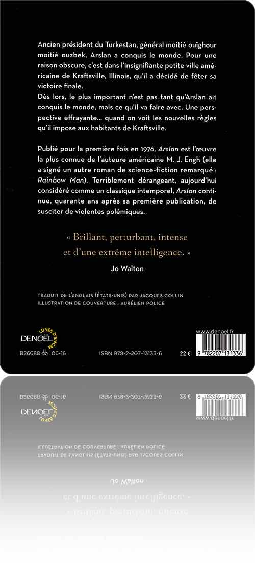 M.J. EnghArslandans l'édition : Denoël › Lunes d'encre, 2016[ 1 ] [ 2 ]de :M.J. Enghtitre :Arslansous une couverture de :Aurélien Policeédition :France › Paris : Denoël › Lunes d'encretype, date et codification :volume simple, mai 2016, ISBN 978-2-207-13133-6description matérielle :400 pages, broché, 14×20 cmpar ailleurs :amazon.frbnf.frbooks.google.frdenoel.frnoosfere.orgnotice :frxliilrbRUKVgLdmNCwkg0kUcj8MUXxAcontenutextes : 1fiction : 1rédactionnel : 0francophone : 0traduit : 15‑388 → M.J. Engh : Arslan (1976 ↬ 2016)