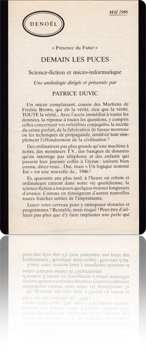 5‑309 → [Collectif] sous la responsabilité de : Patrice Duvic : Demain les puces : Science-Fiction et micro-informatique (1986, [version 1.1])