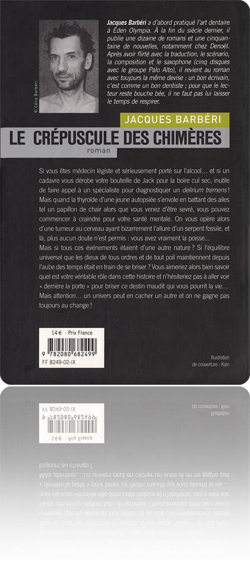 Jacques Barbérile Crépuscule des chimèresdans l'édition : Flammarion › Imagine, 2002[ 1 ] [ 2 ]de :Jacques Barbérititre :le Crépuscule des chimèressous une couverture de :Kainédition :France › Paris : Flammarion › Imaginetype, date et codification :volume simple, septembre 2002, ISBN 2-08-068249-0description matérielle :308 pages, broché, 13×20 cmpar ailleurs :amazon.frbnf.frbooks.google.frnoosfere.orgnotice :frxliihtMbRcana1zylVhaqwPMIgbNp5ccontenutextes : 1fiction : 1rédactionnel : 0francophone : 1traduit : 05‑296 → Jacques Barbéri : le Crépuscule des chimères (2002)