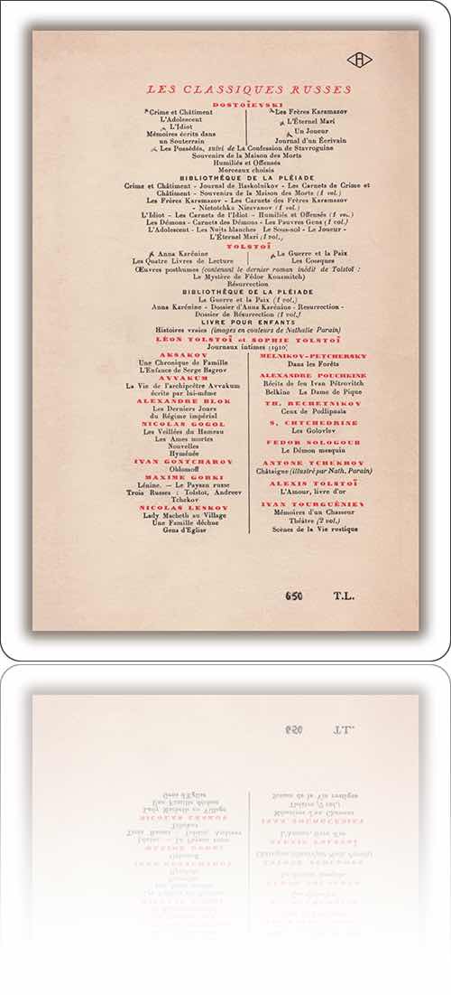 Comporte une préface. On peut effectivement se demander si la jaquette est postérieure à 1971. Entre 1933 et 1971, un simple rebrochage de l'édition "les Jeunes Russes" de 1929 a été effectué, qui portait déjà la mention "Du monde entier" en couverture, sans indication de préface, donc.