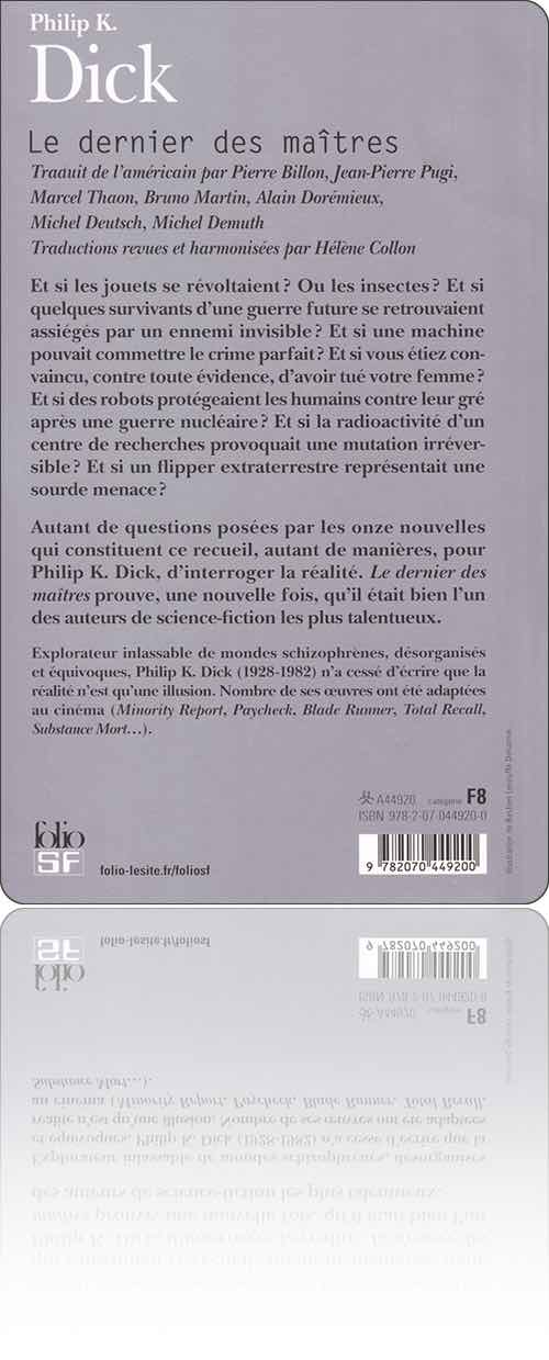 23‑74 → Philip K. Dick : le Dernier des maîtres (1954 [1953] ↬ 1982, traduction de 1982 revue et harmonisée en 1995)