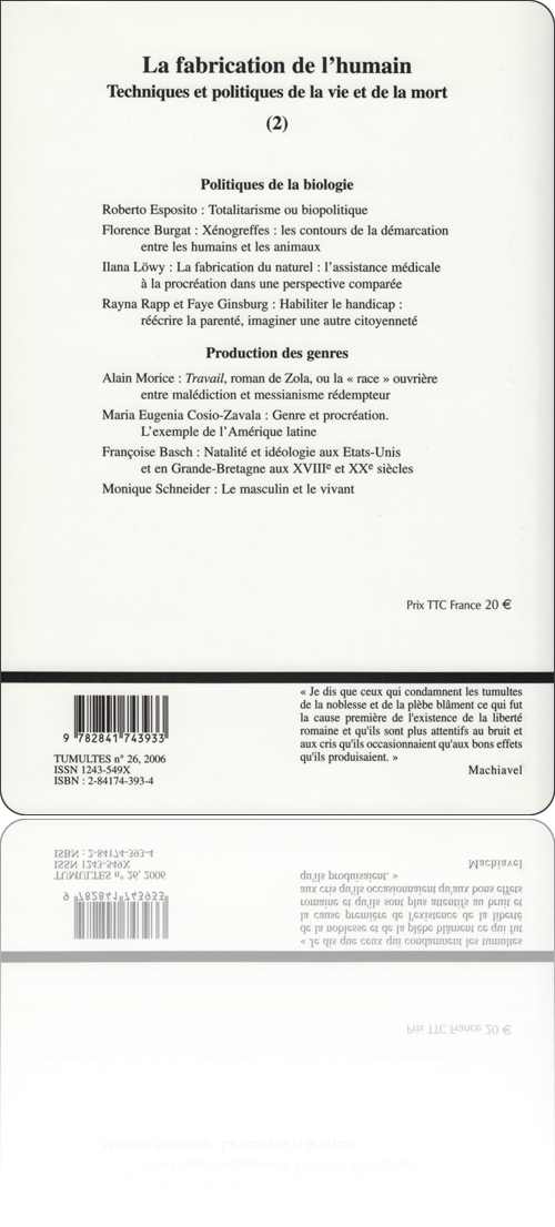 Tumultes, nº 26, mai 2006 : la Fabrication de l'humain 2