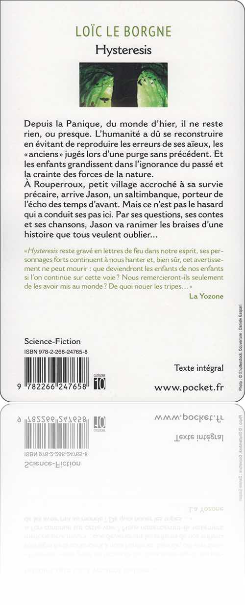 Loïc Le BorgneHysteresisdans l'édition : Univers poche/Pocket › Science-Fiction, nº 7181, 2016[ 1 ] [ 2 ]de :Loïc Le Borgnetitre :Hysteresissous une couverture de :Daniele Gaspariédition :France › Paris : Univers poche/Pocket › Science-Fiction, nº 7181type, date et codification :volume simple, novembre 2016 (octobre 2016), ISBN 978-2-266-24765-8description matérielle :416 pages, broché, 11×18 cmpar ailleurs :amazon.frnoosfere.orgpocket.frnotice :frxliioAzKiHtbLbAwB8EKaMDUPekDXn1contenutextes : 1fiction : 1rédactionnel : 0francophone : 1traduit : 05‑406 → Loïc Le Borgne : Hysteresis (2014)