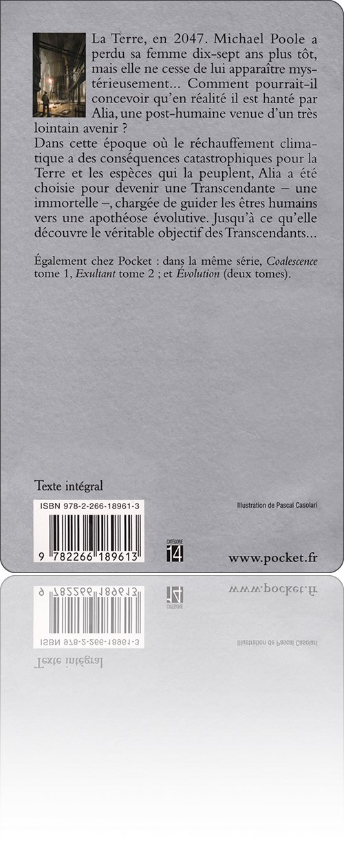 Stephen BaxterTranscendancedans l'édition : Pocket › Science-Fiction, nº 6000, 2010[ 1 ] [ 2 ]de :Stephen Baxtertitre :Transcendancesous une couverture de :Pascal Casolariédition :France › Paris : Pocket › Science-Fiction, nº 6000type, date et codification :volume simple, février 2010 (janvier 2010), ISBN 978-2-266-18961-3description matérielle :800 pages, broché, 11×18 cmpar ailleurs :amazon.frbnf.frbooks.google.frnoosfere.orgpocket.frnotice :frxliirJ2lz8KENAloiABj2FrvuJwhGnBcontenutextes : 1fiction : 1rédactionnel : 0francophone : 0traduit : 15‑795 → Stephen Baxter : Transcendance (2005 ↬ 2008)