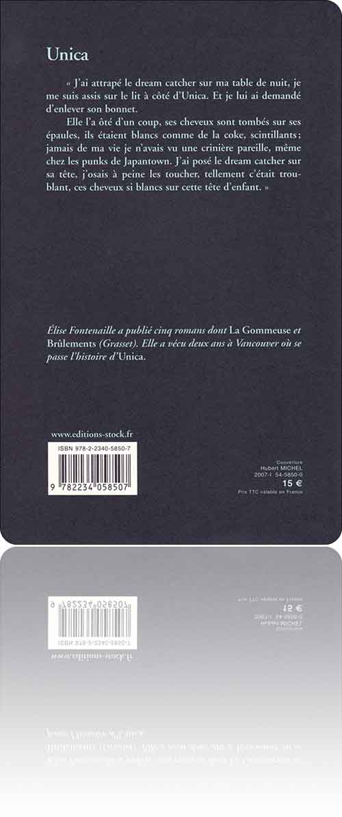 Élise FontenailleUnicadans l'édition : Stock › la Bleue, 2006[ 1 ] [ 2 ] [ 3 ] [ 4 ]de :Élise Fontenailletitre :Unicaédition :France › Paris : Stock › la Bleuetype, date et codification :volume simple, janvier 2007 (novembre 2006), ISBN 978-2-2340-5850-7 [978-2-234-05850-7]description matérielle :162 pages, broché, 13×21 cmpar ailleurs :amazon.frbnf.frbooks.google.freditions-stock.frnoosfere.orgnotice :frxliixINzqfNGkuzXFyZsipQQw1s4ZRlcontenutextes : 1fiction : 1rédactionnel : 0francophone : 1traduit : 05‑161 → Élise Fontenaille : Unica (2006)