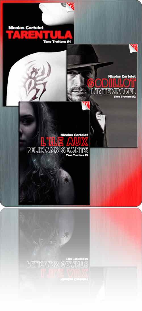 Nicolas CarteletTime-Trottersdans l'édition : Walrus, 2014[ 1 ] [ 2 ] [ 3 ] [ 4 ]de :Nicolas Cartelettitre :Time-Trottersédition :France › Paris : Walrus › [sans collection]type et période de publication :trois volumes simples, mai 2014 (26 mai 2014) → août 2014 (31 août 2014)notice :frxlii8W879AeON1H9N5yeeUnWaL6S5GFregroupementNicolas Cartelet : Time-Trotters (2014)Nicolas Cartelet : Tarentula (2014)Nicolas Cartelet : Godillot, l'intemporel (2014)Nicolas Cartelet : l'Île aux pélicans géants (2014)