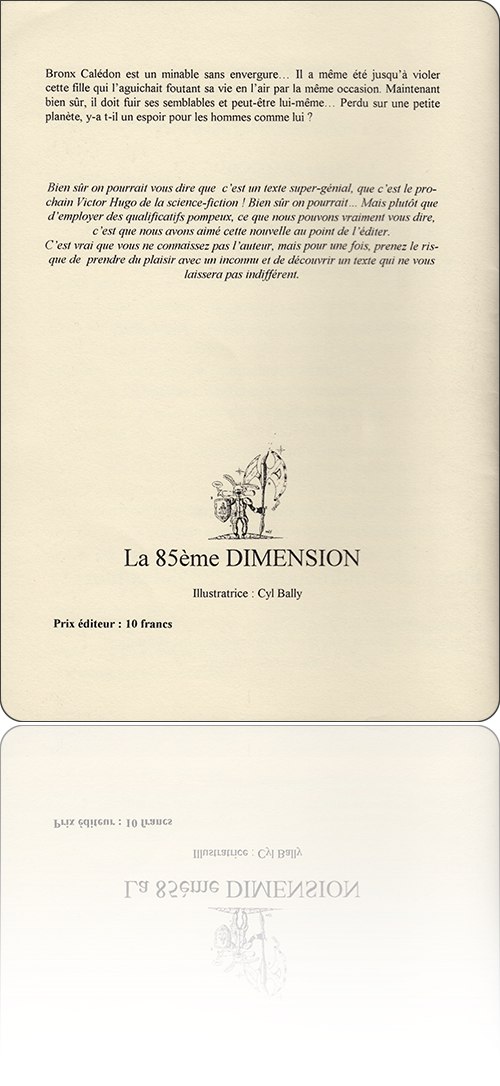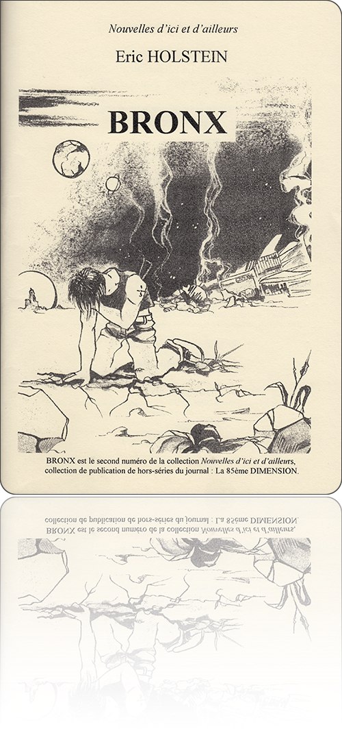 Éric HolsteinBronxdans l'édition : Trompadère › Nouvelles d'ici et d'ailleurs, nº 2, 2000[ 1 ] [ 2 ]de :Éric Holsteintitre :Bronxsérie :les Carnets de ‘la 85ème dimension’, nº [2], 2000sous une couverture de :Cyl Ballyédition :France › Ris Orangis : Trompadère › Nouvelles d'ici et d'ailleurs, nº 2type, date et codification :volume simple, 2000, ISBN non codifiédescription matérielle :60 pages, agrafé, 15×21 cmnotice :frxlii5FOd8Wz52FopSUWyOq1jrIWL3zzcontenutextes : 1fiction : 1rédactionnel : 0francophone : 1traduit : 01‑57 → Éric Holstein : Bronx (2000)