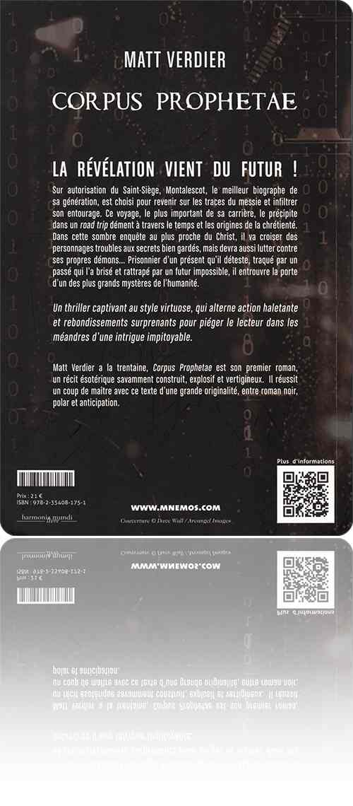 Matt VerdierCorpus prophetædans l'édition : Mnémos › Thriller, 2014[ 1 ] [ 2 ]de :Matt Verdiertitre :Corpus prophetæsous une couverture de :Dave Wallédition :France › Saint-Laurent-d'Oingt : Mnémos › Thrillertype, date et codification :volume simple, avril 2014 (mars 2014), ISBN 978-2-35408-175-1description matérielle :432 pages, broché, 15×23 cmpar ailleurs :amazon.frbnf.frbooks.google.frmnemos.comnoosfere.orgnotice :frxliiceKpb9Ed3dgLUrRScdrhiyU0s0kcontenutextes : 1fiction : 1rédactionnel : 0francophone : 1traduit : 03‑424 → Matt Verdier : Corpus prophetæ (2014)