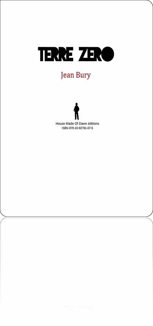 Jean BuryTerre Zérodans l'édition : House made of dawn, 2013[ 1 ] [ 2 ]de :Jean Burytitre :Terre Zérosous une couverture de :[Anonyme]édition :France › Talence : House made of dawn › [sans collection]type, date et codification :volume simple, [décembre 2013], ISBN 979-10-92791-07-5statut :inédit en numériquedescription matérielle :340 pages, document Acrobat.pdfpar ailleurs :amazon.frbooks.google.frnotice :frxlii3xuUeQckoFPTeKsa6yidsY69kJCcontenutextes : 1fiction : 1rédactionnel : 0francophone : 1traduit : 02‑338 → Jean Bury : Terre Zéro (2013)