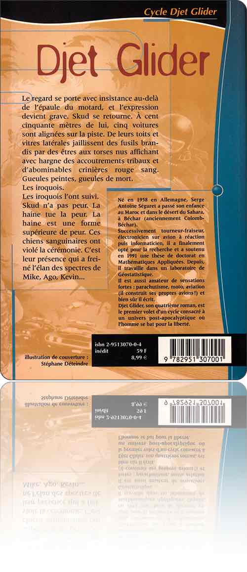 Serge A. SéguretDjet Gliderdans l'édition : Oxalis › Science-Fiction, nº 1, 2000[ 1 ] [ 2 ]de :Serge A. Ségurettitre :Djet Glidersous une couverture de :Stéphane Déteindreédition :France › Toulon : Oxalis › Science-Fiction, nº 1type, date et codification :volume simple, mai 2000, ISBN 2-9513070-0-4description matérielle :216 pages, broché, 13×20 cmpar ailleurs :amazon.frbnf.frbooks.google.frnoosfere.orgnotice :frxlii4c5KT2fIaJtS6V5S66pSKpR8P1ocontenutextes : 1fiction : 1rédactionnel : 0francophone : 1traduit : 03‑209 → Serge A. Séguret : Djet Glider (2000)