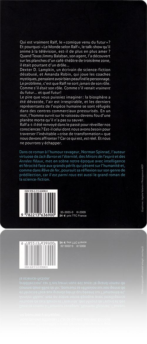 L'intérêt principal de ce livre pour l'amateur de Science-Fiction ne réside cependant pas dans ce qui précède. L'Humanité en marche vers le suicide ? La patrouille du temps ne sachant quoi inventer pour la tirer de là ? Les forces des ténèbres qui aimeraient finalement bien que l'on n'allume pas la lumière ? Ce n'est pas vraiment nouveau… et la façon dont l'émissaire futur s'y prend, qui nous permet de redécouvrir les milieux ennuyeux et assommants de la télévision et du spectacle, où ce qui est dit “mauvais” n'est manifestement pas vraiment différent de ce qui est déclaré “génial”, laisse peu de place au suspense, d'autant plus que celui-ci n'est pas entretenu : qui est vraiment Ralph ? Vient-il vraiment de l'avenir ? Il nous est dit à de nombreuses reprises que cela ne changeait rien, que cela n'avait pas d'importance, et finalement on y croit et on finit par s'en foutre effectivement, ce qui ne sert pas l'intrigue, déjà que l'avenir de l'Homme ne nous concernait pas vraiment… Spinrad dit un peu partout, dans des articles ou des entretiens, que ce roman, qu'il considère comme son meilleur, a une certaine importance culturelle, que c'est une sonnette d'alarme à ne pas négliger. Pour le lecteur normal, effectivement, elle n'a peut-être pas encore sonné — il faudrait dans ce cas, pour qu'il l'entende, packager en littérature générale afin qu'il ait une chance d'acheter et de lire, ce qu'il ferait certainement sans s'apercevoir qu'il s'égare, qu'il déchoit, qu'il fraye avec un mauvais genre.(2) Dans ces rayons généralistes, le fan de SF saurait bien, lui, l'y découvrir de toute façon, et il s'y délecterait alors d'autre chose : de la réflexion de Spinrad sur ce que c'est vraiment que d'être un écrivain ou un amateur de Science-Fiction, sur la position et le rôle social de l'un et de l'autre, sur l'image de l'un pour l'autre et réciproquement. Le premier roman de méta-Science-Fiction ? Sans aucun doute le meilleur :-)