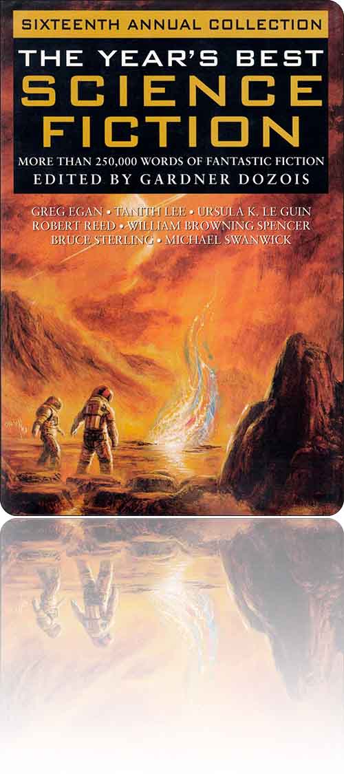 Les sélections annuelles de Gardner Dozois, par leur volume, par leur positionnement au cœur de la SF américaine du moment, par la qualité jamais démentie de leurs choix — effectués par un rédacteur en chef boulimique —, sont un miroir incomparable du genre pour les lecteurs pressés. Que ce soit pour cette prosaïque raison, ou tout simplement parce qu'on trouve dans “le Dozois” tout ce qui est incontournable, les éditeurs français ont souvent traduit des textes que l'on avait pu voir précédemment dans l'omnibus annuel de St. Martin's — pensez à David Marusek chez Orion/Étoiles vives, ou à Nancy Kress dans le Monde. On ne perd donc pas son temps à jeter un œil sur l'édition de l'année…