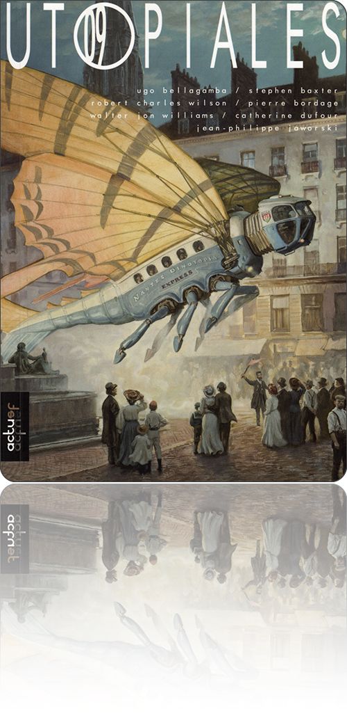 Après une intro ravigotante d'Ugo Bellagamba, nous avons droit à six nouvelles. Passons rapidement sur celles qui m'ont moins transporté. Pierre Bordage, conteur inspiré, se livre avec "De ma prison…" à un exercice de réflexion philosophico-religieuse qui me laisse froid. Jean-Philippe Jaworski relit dans "Préquelle" le mythe howardien, et le relie à l'Histoire antique — ouvrage fort bien fait, mais pas de quoi réinventer la Fantasy. Stephen Baxter est d'une autre trempe ; son "George et la comète" a les défauts de ses qualités : ses Londoniens transportés à la fin des temps dans des corps de lémuriens ne manquent pas d'humour, mais la situation n'évolue guère et est trop artificielle pour me transporter.