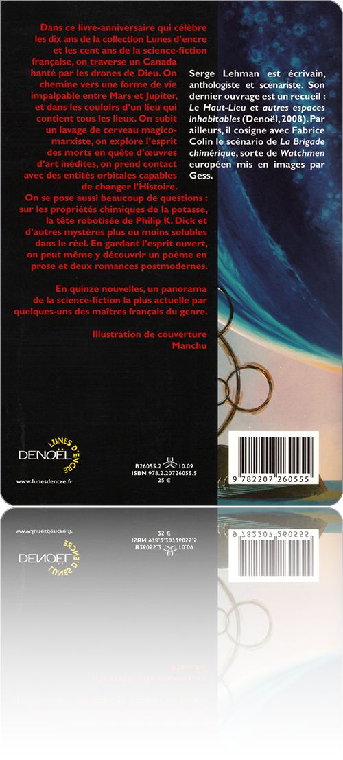Plusieurs facteurs entrent en jeu. Quand on entreprend un état des lieux, et qu'on veut un livre lisible, il est inévitable que, par leur métier, s'imposeront un certain nombre d'auteurs. Il n'y en a pas tant qui produisent au plus haut niveau, et suffisamment. Que la plupart des noms au sommaire soient connus ne me surprend pas. La faiblesse de certains textes peut décevoir ; Daylon ou David Calvo, par exemple, ne m'ont pas convaincu. Mais dans l'ensemble, je ne me suis pas ennuyé en lisant le livre. On peut certes arguer que Thomas Day, Éric Holstein ou Laurent Kloetzer n'ont pas forcé leur talent ; mais ils se lisent bien, transmettent des idées SF (je ne m'attendais pas à autant de technicité informatique de la part de Day, même s'il fonctionne à l'adrénaline en nous donnant un hybride de Mad Max et la Route [ 1 ] [ 2 ]), et n'ennuient pas même s'ils ne surprennent pas.