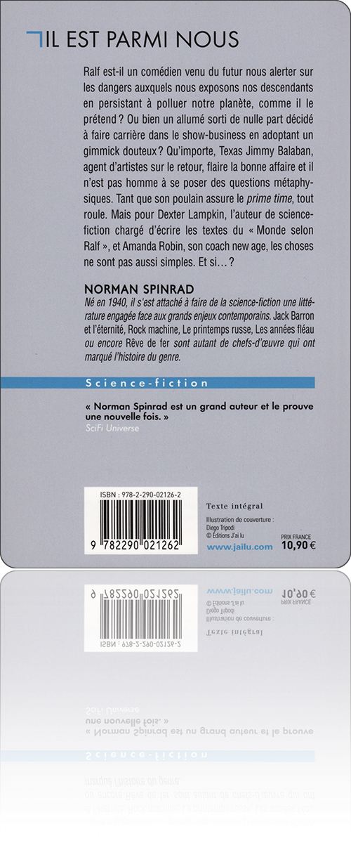 En fin de compte, et quelle que soit la vérité sur l'avenir du globe ou l'origine de Ralf, Il est parmi nous est une lettre d'amour paradoxal adressée à la SF : comme la vérité profonde cachée dans les blagues idiotes, la SF a raison, mais n'est pas prise au sérieux ; et même le fandom avec ses oripeaux (constamment caricaturés) est plus intelligent que la masse des téléspectateurs (dont on peut voir une caricature outrée dans le personnage de junkie, droguée chimique comme on peut être drogué de télé, entraînée dans une descente aux enfers physique en parallèle magnifié d'autres descentes aux enfers des consommateurs piégés, par le surendettement par exemple). La télévision est le véritable ennemi, et la culture générale, même intellectuelle et irritée par l'audiovisuel, n'a peut-être pas autant de ressources pour identifier les maladies de notre société que la SF. Évidemment, ce message de Spinrad risque de ne pas arriver jusqu'à ceux qui en auraient le plus besoin — en un sens, ce sont les auteurs de SF qui se lancent dans les entreprises les plus commerciales, comme Iain M. Banks, qui ont le plus de chance de faire entendre leur musique politique — mais espérons qu'au moins il sera compris par ce qui reste le cœur de l'auditoire de Spinrad : les amateurs et, oui, même les fans de SF, parmi lesquels je n'ai pas honte de me compter.