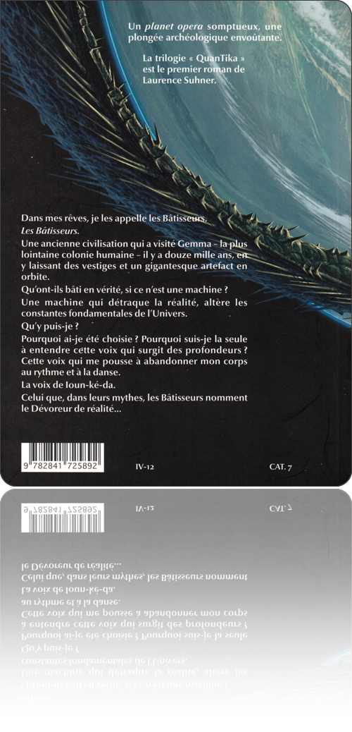 Laurence Suhner — que, soyons sérieux, nous avons déjà lue sous forme courte dans l'anthologie Dimension Suisse — se lance donc avec une trilogie de space opera qui devrait dépasser les mille cinq cents pages quand tout sera publié si on en juge par la grosseur du premier volume. De tels chiffres n'auraient pas grand intérêt s'ils n'étaient à la mesure de l'ambition du projet, qui mêle premier contact, aventure, roman familial, et hard SF avec ses allusions à la mécanique quantique.