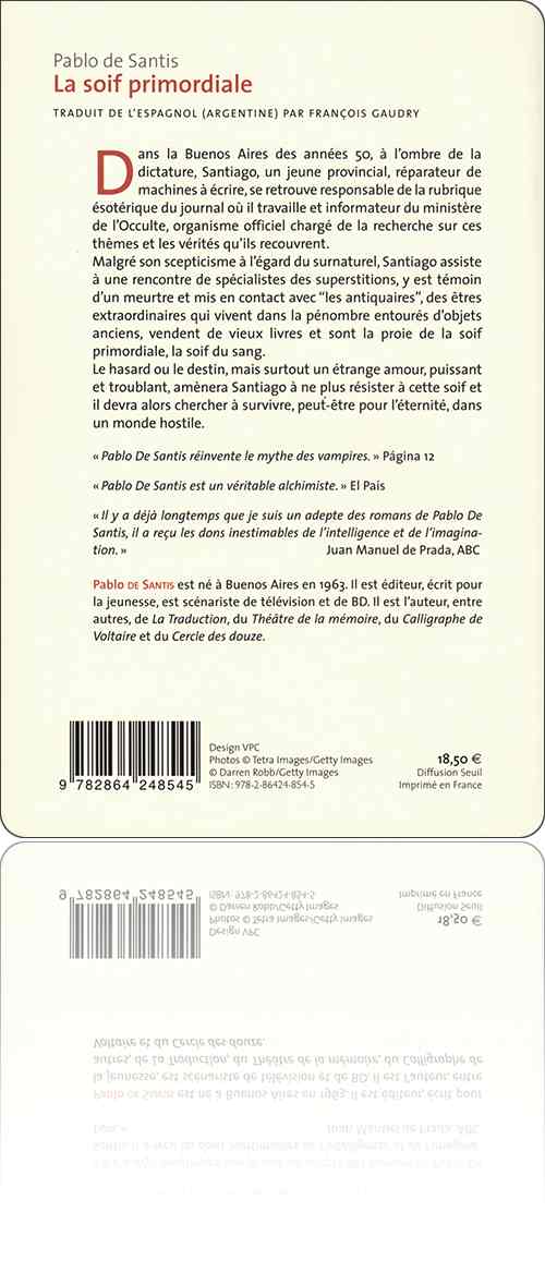 PS : le nom de l'auteur est orthographié "De Santis" sur tous ses livres en espagnol et "de Santis" sur une partie des couvertures du présent livre français.
