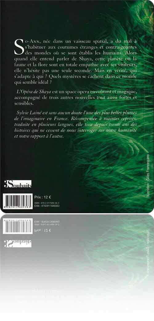 Pas autant, sans doute, que "l'Opéra de Shaya". Je me prends à regretter que le texte ne se soit pas vu attribuer la place d'honneur, en fin de recueil, après les amuse-gueule. En tout cas, je vous recommande de le garder pour la fin de votre lecture, histoire de rester sur l'impression la plus durable. Deux mots de l'intrigue : So-Ann est une voyageuse, dans une société humaine galactique qui se répartit entre ceux-ci et les enracinés, qui ne bougent pas de leur planète et en adoptent les codes rigides. On en voit un exemple dans les premières pages du récit. Si on en restait là, ce serait de la critique sociale, dans l'air du temps, un peu anecdotique. Les choses prennent un tour bien différent quand So-Ann s'envole pour la mystérieuse Shaya, une planète qui n'admet qu'un nombre très réduit de visiteurs, pour profiter de leur patrimoine génétique… Progressivement, l'utopie se transforme en cœur des ténèbres, et même si certains retournements sont prévisibles, jusqu'à la fin, on reste surpris par le récit.
