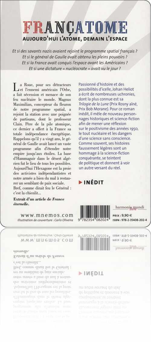 Hors uchronie, un(7) autre aspect mérite ici l'attention, sans que je sache ni s'il doit être porté au crédit ou au débit de l'auteur, ni comment le développer ici sans “spoiler” de façon éhontée. Les oscillations entre le présent du personnage principal et son passé, qui font découvrir petit à petit et ses souvenirs et ce qu'il ne savait pas et découvre, mènent presque jusqu'aux dernières pages. Là, tout à coup, de nouveaux suspenses s'ajoutent à l'histoire et aux problèmes qu'elle pose avec une trahison caractérisée de la part des services spéciaux ; de plus, dans la grande tradition du roman populaire suractivée par la Science-Fiction, c'est l'identité, voire la nature même de ce narrateur, qui se trouve mise en question, sans que des prémices l'aient réellement annoncé auparavant, en dehors des imprécations finalement justifiées d'une nourrice berbère. Et à l'univers uchronique décrit, s'en ajoute brutalement un autre, qui ne peut pas être le nôtre, plus un arrière-monde quelque peu vertigineux. Et j'avoue ne pas savoir s'il faut féliciter Heliot pour le tour de maître qu'il réalise en faisant tout cela en si peu de pages et en laissant le lecteur pantois, ou s'il faut le blâmer pour le tour de cochon fait au même lecteur prié de se débrouiller avec les éléments qui lui sont chichement octroyés. À moins que ce soit le point de départ de développements futurs…