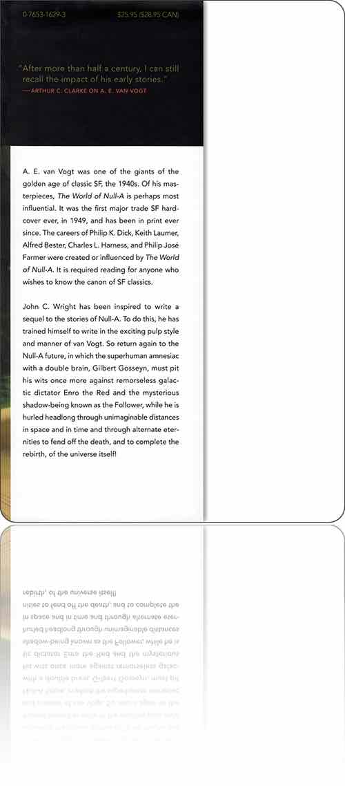 Le lecteur français connaît John C. Wright par ses œuvres de Fantasy, ou par sa Trilogie de l'Âge d'or,(1) au sujet de laquelle son éditeur invoquait déjà A. E. van Vogt. Il franchit ici une autre étape dans l'admiration de son modèle : donner une suite à la Série du non-A dudit Van Vogt, dyptique époustouflant (et foutraque) des années 40, malencontreusement étendu aux dimensions d'une trilogie dans les années 80.
