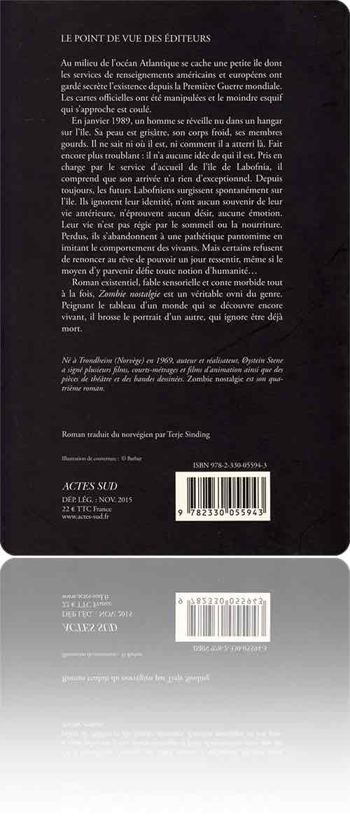 Avec Zombie nostalgie, Øystein Stene ne suit pas exactement le même chemin que Browne et parvient ainsi, avec une certaine roublardise et avec l'indispensable complicité de ses lecteurs, à trouver une nouvelle voie. Car, pour apprécier au mieux ce livre, il faut faire totale abstraction de son titre et de sa couverture. En effet, si le terme de zombie n'est pas employé dans les tout premiers chapitres, il trône au frontispice de ce roman et les lecteurs se doutent bien que Johannes, tout comme l'ensemble de la population de Labofnia, ne peut être qu'un zombie et donc forcément un amateur de chair humaine. Pourtant, Øystein Stene retarde volontairement le moment de cette révélation le plus longtemps possible. La lecture de Zombie nostalgie ressemble à un jeu de cache-cache entre l'auteur, qui diffère l'instant où ses Labofniens agiront enfin comme les zombies qu'ils sont, et les lecteurs qui attendent de voir comment l'auteur va révéler ce secret de polichinelle. La narration alternée choisie par Øystein Stene participe à retarder l'aveu de la nature zombiesque des Labofniens. On suit donc en parallèle le récit dans lequel Johannes se découvre et découvre les méandres de la société Labofnienne de 1989 et les chapitres qui dévoilent toute l'histoire de cette île perdue par le biais des archives locales.