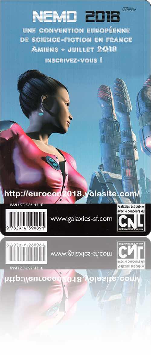 Julie Subirana est une autrice que je ne connaissais pas (elle a déjà publié une nouvelle dans Galaxies, et un roman), et qui se lit fort bien. "la Clef" commence comme du space opera, puis rejoint la thématique hallucinatoire de la SF française, version pharma ; ce défaut d'originalité n'empêche pas d'espérer d'autres bons textes de sa plume. Je n'en dirais pas autant de Giuliana Acanfora, responsable de "Vertige", le seul texte traduit (de l'italien). C'est une nouvelle à chute, fondée sur un brutal changement de perspective du personnage principal. Mais on a vu beaucoup de cette sorte de nouvelles en SF, et la chute est prévisible.