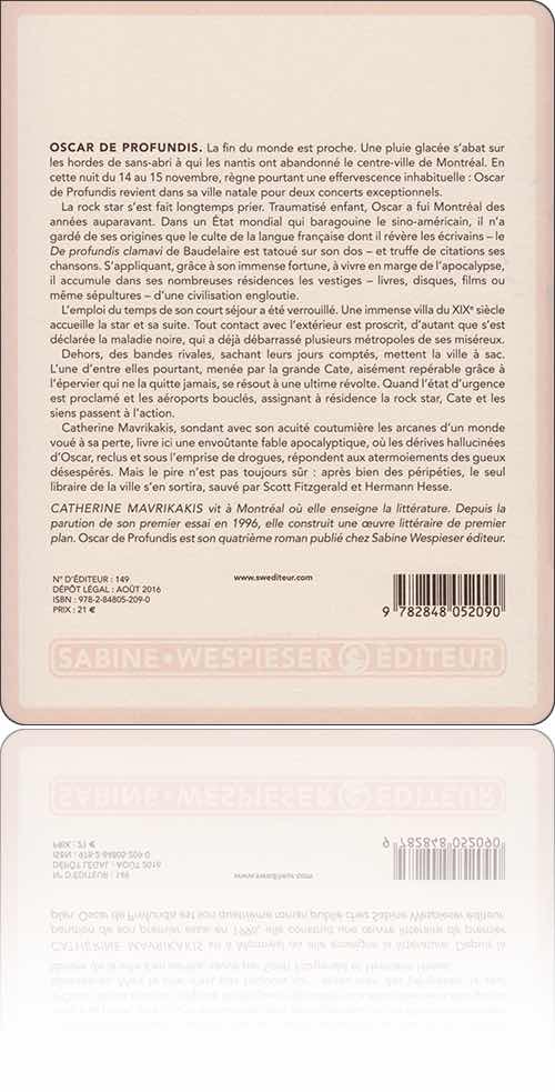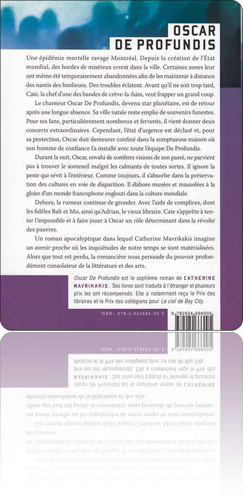 Dans ce lieu, en chapitres alternés, deux histoires se développent, clairement vouées à se rencontrer au bout du compte, selon une formule éprouvée — une référence aux romans de Pierre Pelot/Suragne au Fleuve noir du milieu des années 1970 ne sera pas ressentie comme élogieuse côté littérature “légitime”, et pourtant… D'un côté, donc, les “gueux”, SDF, squatters, clochards, surveillés voire espionnés par l'État : ceux qui sont tombés hors de la société, ou ne s'y sont pas adaptés, qui ne la contestent d'ailleurs même pas ou plus, sauf quelques individus, dont une femme qui, chef d'un petit groupe hétéroclite, cherche la voie de la révolte oubliée depuis quelques décennies (l'auteur semble par ailleurs en avoir, pour notre passé et notre futur très proche, une vision quelque peu restrictive, théorique et livresque, limitée à une mouvance réputée marxiste-léniniste, mais c'est là une autre affaire) ; de l'autre côté, le personnage éponyme, rock star mondiale revenue le temps d'un concert dans sa ville natale, qu'il n'aime pas, qu'il fuit même, et qui est marquée pour lui par l'assassinat de son petit frère voici bien longtemps. Cet Oscar de Profundis, est lui-même un personnage marginal, d'une certaine façon étranger à cette société “normale” qu'on ne verra jamais, entre ses excès de star et un culte du passé qui lui fait amasser des livres dans un monde qui les rejette, transférer les dépouilles illustres dans un cimetière privé à l'heure où les tombes sont supprimées, et truffer ses concerts de citations, jusqu'au "De profundis clamavi", sonnet baudelairien tatoué sur son dos ; ses références parcourent le roman, outre Baudelaire, Sade, Artaud, Beckett, Lautréamont, Breton, Crevel, sans préjudice d'autres pas seulement littéraires, Wagner massivement écouté et, quand sont cités les morts illustres qu'il réunit, Man Ray, Ossip Zadkine, Beethoven côtoyant Cioran ou Tzara. On notera une place éminente de Joris-Karl Huysmans et de ses Esseintes, et la quasi-absence de référence vraiment contemporaine, pour ne rien dire d'auteurs imaginaires futurs — les deux exceptions, sauf erreur, pouvant d'ailleurs nous intéresser directement, puisqu'il s'agit d'Antoine Volodine, « auquel Oscar vouait une admiration toute particulière »