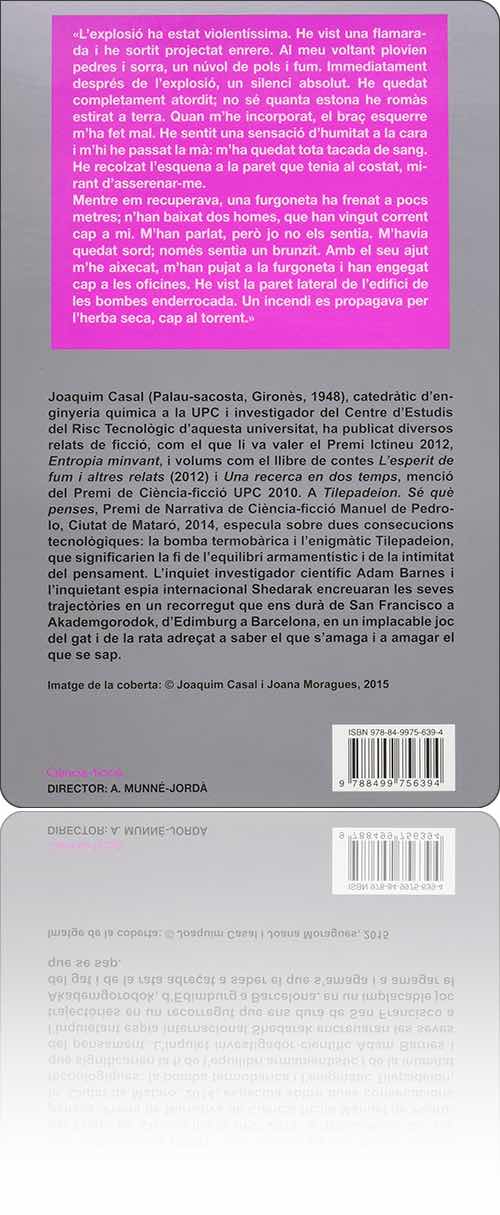 Le roman est correctement mené, avec une dose de suspense sur la couverture de Shedarak et les décisions personnelles d'Adam, et des personnages assez bien dessinés. Malheureusement, il est écrit dans un catalan sans étincelles — avec de curieuses hésitations sur l'emploi respectif du prétérit et du prétérit périphrastique, mais vous vous en fichez sans doute —, et l'intrigue est finalement très ordinaire. L'auteur, qui est chimiste de son état, professeur d'université, sait donner une image précise des travaux sur la combustion. Par contre, ses conceptions sur la télépathie et la recherche en neurologie me semblent relever d'une SF un peu dépassée. Celle de ces romans de merveilleux scientifique où un inventeur génial, travaillant dans la quasi-clandestinité, pouvait concevoir, réaliser et mettre au point une invention capable de changer la face du monde. En particulier, la production concrète du Tilepadeion sont des fragments de texte, représentant les pensées explicites des individus sur lesquels la machine est braquée ; et il faut pour qu'elle fonctionne qu'elle soit réglée sur la langue dans laquelle la personne en question va penser. Je n'ai jamais été convaincu que la pensée soit verbale avant tout — c'est une question délicate : il ne fait pas de doute que le langage est indispensable au cerveau humain pour se former et pour classer le monde, pour ainsi dire, mais je ne formule des mots ou des phrases en mon for intérieur qu'après un processus plus ou moins long d'élaboration de ce qui est une impression visuelle, ou sensuelle en général, ou un raisonnement par schémas…(1) En tout cas, quand, comme un personnage secondaire du livre, francophone, j'admire un postérieur féminin particulièrement suggestif, je ne formule jamais à part moi l'expression quelles fesses (p. 126, en français dans le texte), ni même le plus direct quel cul (quin cul, donné p. 127 comme traduction, plutôt inexacte à mon sens, de l'expression française), je me perds plutôt dans la fascination de l'image. Je réserve les élaborations verbales aux sujets dont je pense, ou je fantasme, que je les discuterai avec quelqu'un d'autre, et celui-là ne me semble pas approprié pour le partage.