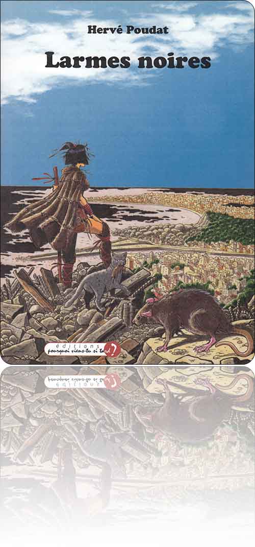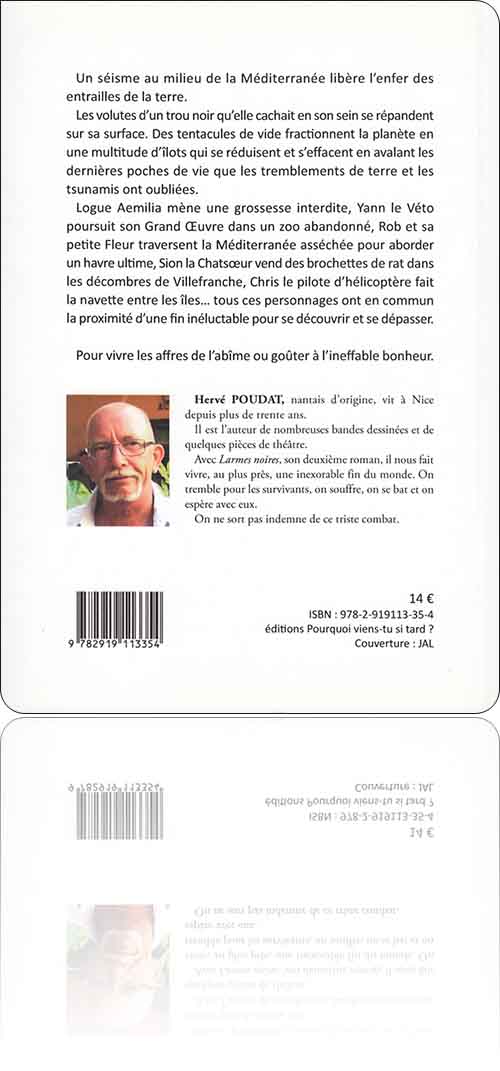 Deuxième roman d'Hervé Poudat après la Transhumance des anges, également connu pour ses talents de scénariste de bandes dessinées, Larmes noires entraîne ses lecteurs au cœur d'une fin du monde plutôt originale. En effet, le romancier ne fait pas le choix de la facilité : il délaisse les classiques catastrophes naturelles, les Armageddons nucléaires et les apocalypses zombies, pour démanteler le globe par petits bouts. Une matière sombre dévore toutes les terres avec lenteur, mais détermination, laissant persister des îlots où s'accrochent et s'organisent les derniers survivants.