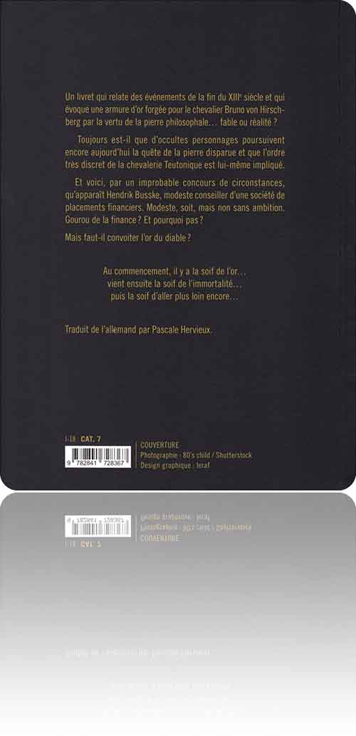 Tout commence par le vol d'un livre ancien chez un bouquiniste. Hendrik Busske, simple employé de banque, y déniche la légende fascinante d'un alchimiste ayant trouvé la Pierre philosophale. Dans cet opuscule aux pages jaunies, il dévore l'histoire de John Scorro, un Anglo-Saxon ayant découvert, en 1295, le plus grand des secrets de l'alchimie. Il est contraint par le chevalier allemand Bruno von Hirschberg de fabriquer de l'or pour financer une nouvelle croisade. Mais le métal précieux issu de cette transmutation contre nature est maudit et tous ceux qui le conservent meurent. Après avoir lu ce récit intrigant, Hendrik décide de changer de vie.